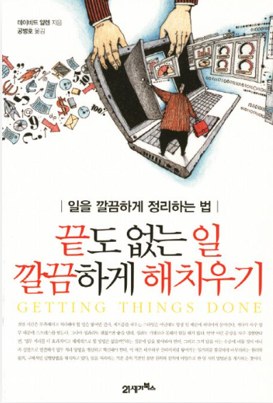 데이비드 앨런(David Allen)의 "끝도 없는 일 깔끔하게 해치우기(원제목:Getting Things Done)"은 생산성을 향상시키고 작업을 보다 효과적으로 관리하기 위한 포괄적인 가이드 책이다. 이 책은 우리가 체계적이고 일을 할 수 있도록 우리의 삶에 들어오는 모든 정보를 포착하고 처리하는 것의 중요성을 강조한다.